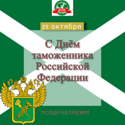В День таможенника Российской Федерации хотим поздравить тех, кто занимается важной, сложной работой, защищая страну от ввоза незаконных грузов, способных повредить экономике и социальному здоровью страны. Спасибо вам, дорогие таможенники, за то, что вы, получив серьёзное образование, отдали свою жизнь профессии, необходимой для спокойствия и мирной жизни своей Родины. Ура!