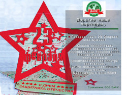 Компания «ДАЛК» поздравляет с 23 Февраля сильную половину человечества! Мужчины, желаем вам спокойствия, расширения возможностей, перспективных предложений, больших финансовых поступлений и увеличивающегося спектра достижений. Будьте сильны, настойчивы и решительны. Мира, добра и всех благ!