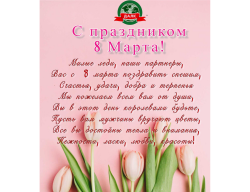 Дорогие дамы, ООО «ДАЛК» поздравляет вас с Международным женским днем! Мы очень рады, что вы являетесь нашими клиентами, мы желаем вам успехов в бизнесе, финансового благосостояния, благополучия и здоровья вам и вашим семьям. Красоты, мира и добра!